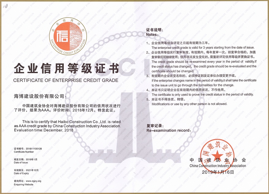近期,中國建筑業協會通報表彰了2018年度全國建筑業 AAA 級信用企業,并頒發了榮譽證書。我司信用等級被評定為“AAA”級,這是繼中華人民共和國水利部、中國施工企業管理協會給予評定的“AAA”級之后,榮獲的第三項國家主管行...