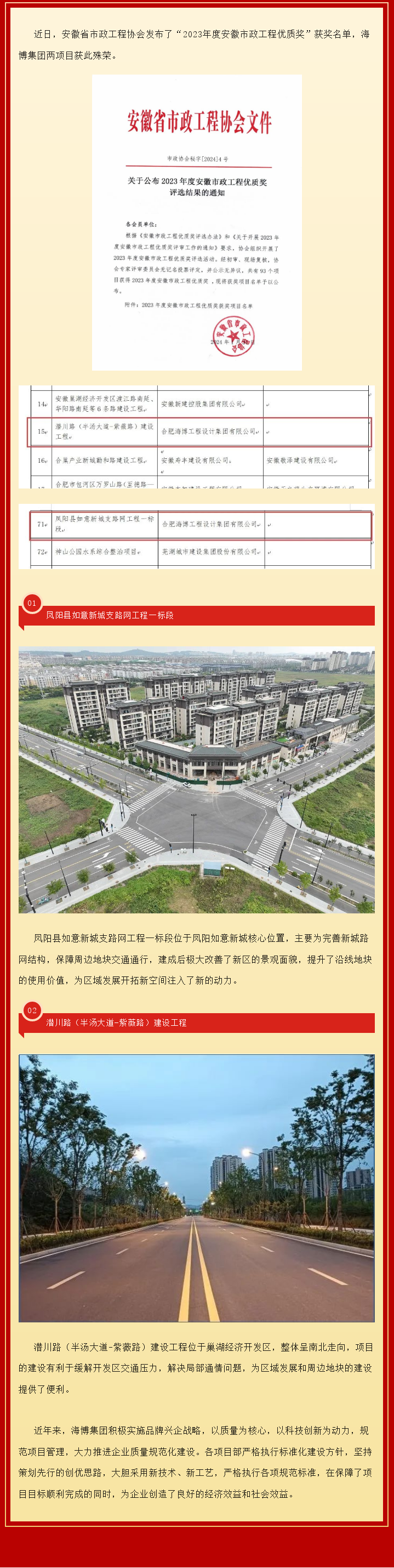 集團兩項目榮獲“安徽市政工程優質獎”